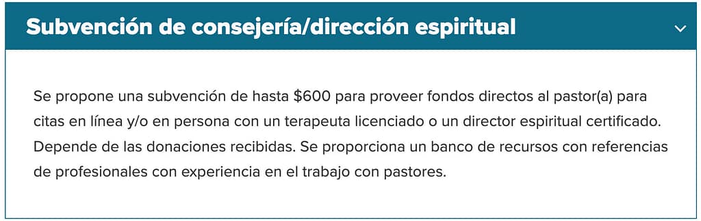 Subvención para consejería/dirección espiritual de hasta $600. Depende de las donaciones recibidas.